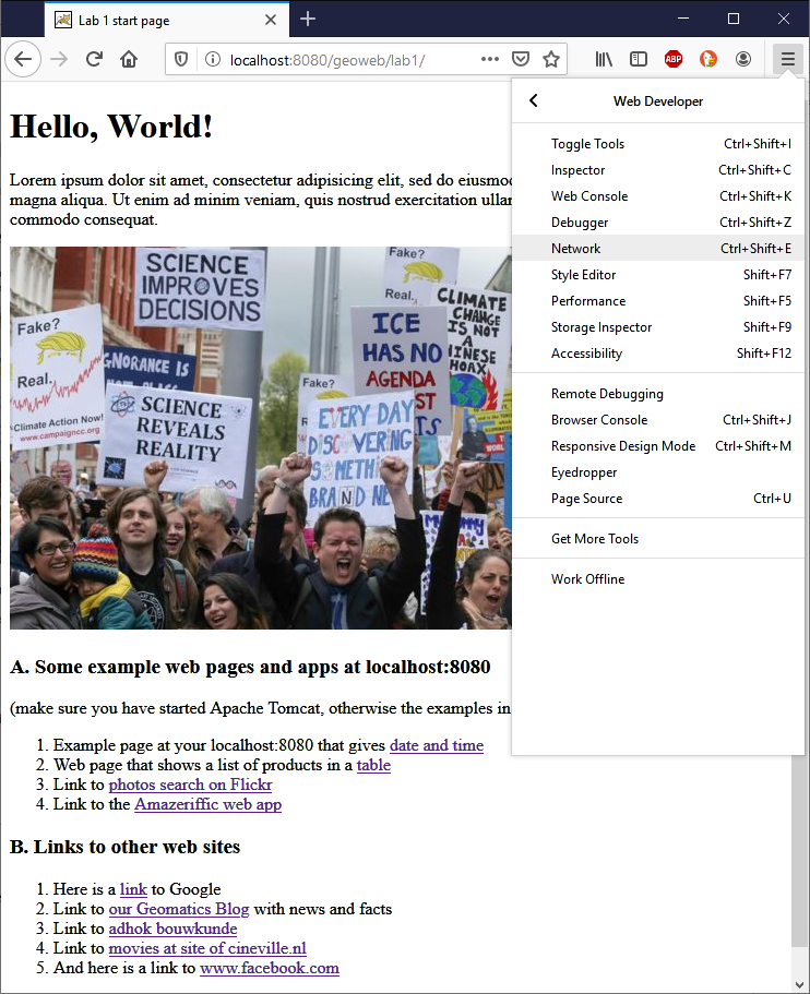 Go again with your browser to http://localhost:8080/geoweb/lab1/