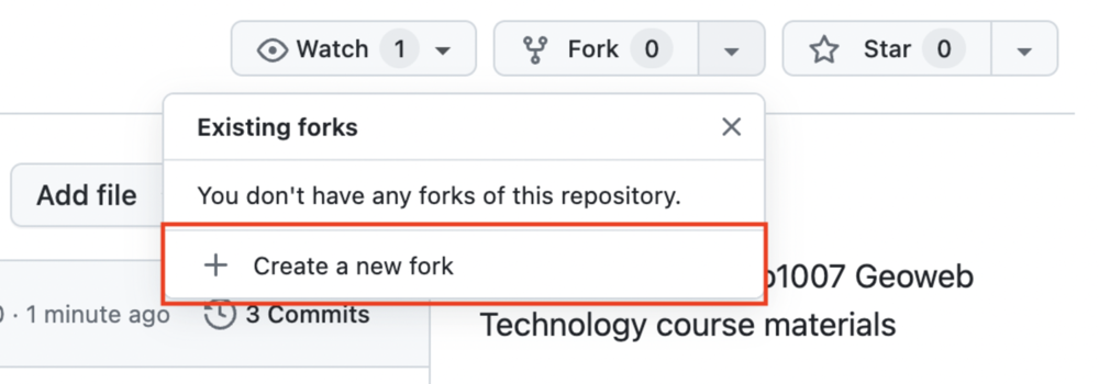 Navigate to the GEO1007 github page, and log in if necessary. You should see a simple page with directories and files.